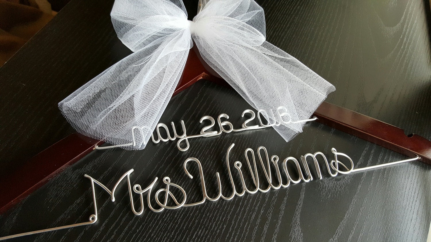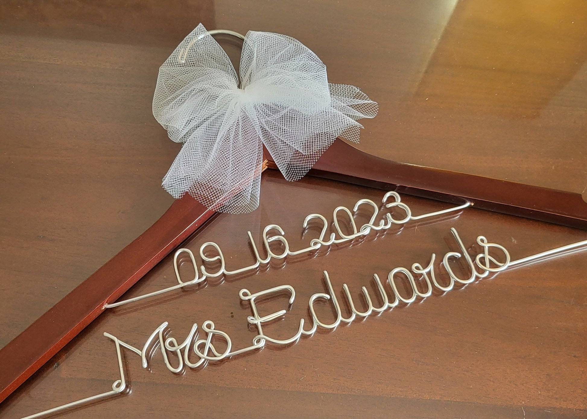 A bride last name hanger makes a beautiful wedding gift. Add these customized wooden dress hangers to your wedding photos. Hang your well made and picked wedding dress on your personalized wedding dress hanger. This is a perfect gifts for your bridal party.